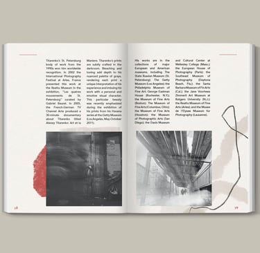 Proyecto editorial que recopila en un álbum fotográfico de Alexey Titarenko; se seleccionaron veinte imágenes y se intervinieron con colores, texturas, y figuras de su obra City of Shadows.