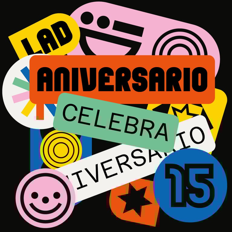 Se realizó la identidad gráfica del aniversario 15 años de la carrera LAD del Tecnológico de Monterrey. Fue una campaña que destacó el arte, la diversión y el compañerismo.