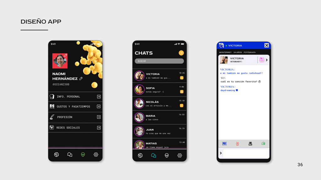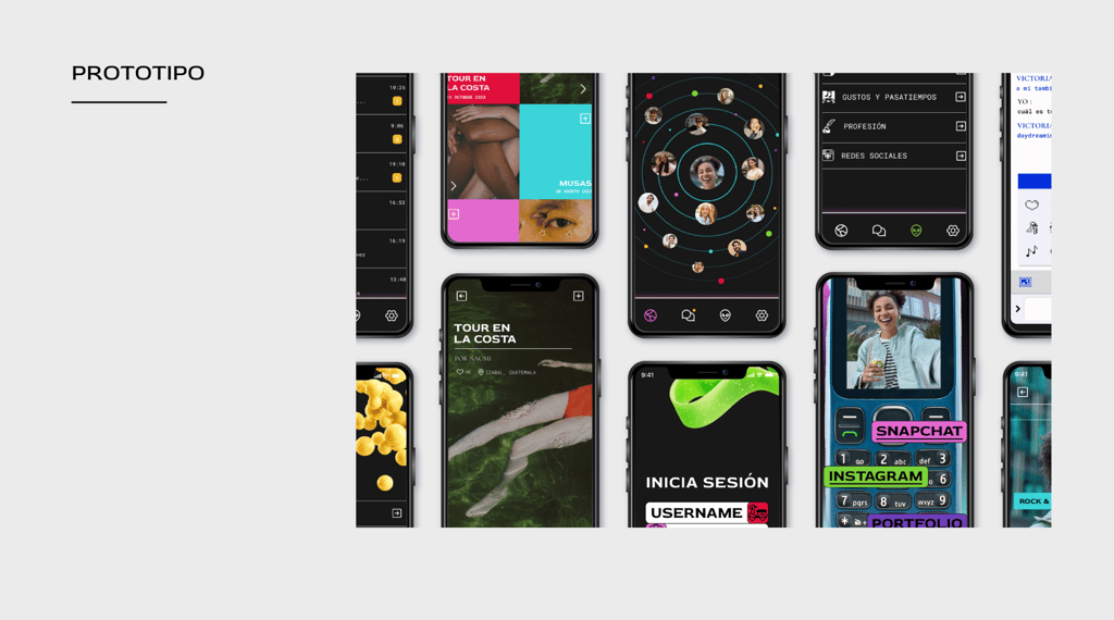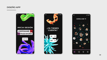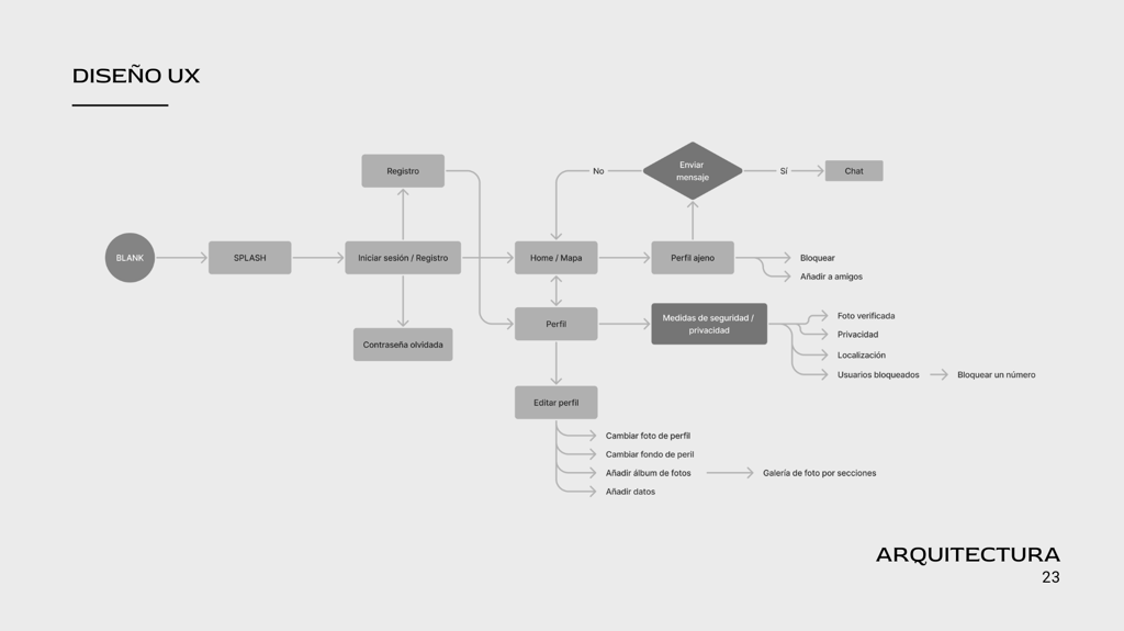 Prototipo para la aplicación BLANK; es una red social que funciona por proximidad, los usuarios mediante un radar podrán ver el perfil de quienes estén a 300 metros a la redonda por un corto periodo de tiempo mientras va en movimiento.