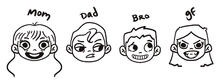 ilustrar,, vídeojuegos,, películas,, cerámica,, graffiti,, leer,, hacer playlists,, coleccionar libros,, hacer páginas web,, escribir,, ir a museos,, obras de teatro,, drag shows,, journaling